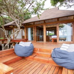 Only a 40-minute drive from the Kosi Bay border, along sandy roads, you will find Aloha Estate. Situated on the beach in Ponta Mamoli, Mozambique. On the same property as the big house there is a smaller 2-bedroom fully self-contained cottage that can sleep 4 people, with the option to sleep 2 kids under 12 on the futons in the lounge. The main bigger house can be rented separately or together with the smaller cottage sleeping 18 people in total. Bedroom 1: 1 x double bed Bedroom 2: 1 x queen bed Please note, that things left outside at night are usually very wet in the morning due to the high level of humidity and condensation in the air. Bean bags left in the sun will become very hot, very quickly because they are black and absorb heat. Please be cautious when touching them if they have been sunbaked. THE HOUSE: Smart TV Vodacom wifi router Nutri blender Toaster Microwave Fridge/freezer combo Coffee machine that takes filter papers and ground coffee Gas braai Hammock Outside sun loungers x 2 Private entrance. Air con in each room and fans Fan in lounge. Both bedrooms are en-suite but the sunrise room only Has an outside shower ENTERTAINMENT CENTRE & COMMUNICATIONS: In keeping with the seclusion, tranquility, and the surrounding nature of Blue Footprints, we have not installed DSTV. However, we have provided a Wi-Fi router with a Vodacom SIM card and an HDMI cable. These will allow you to access the internet and use your computer to watch your streaming service through the TV. The speaker is Bluetooth. The staff will load data onto the sim card with a data bundle package of your choice, the data bundle purchase is at the cost of the client. TOWELS: We provide all linen and a hand and bath towel per guest. Please bring your own beach towels. LAUNDRY: Linen will be changed once a week to be mindful of the environment. BEACH ACCESS: To access the beach, please use the walkways provided to protect the dunes against erosion. Aloha 15 cottage is perfectly situated to provide tranquility, exclusivity and exceptional sunrise and sunset views to its guests. The beach in front is perfect for walking, swimming, playing, snorkeling etc and The surrounding bush is alive with an increasing amount of birdlife, butterflies, monkeys and chameleons.