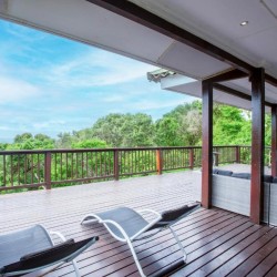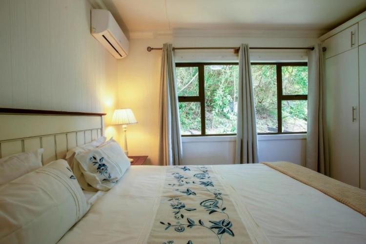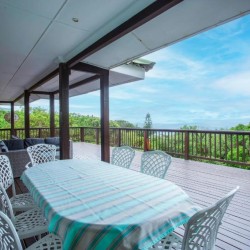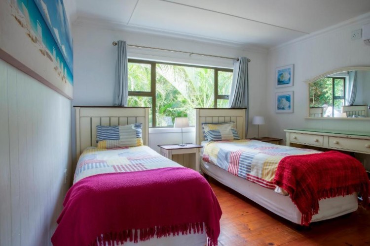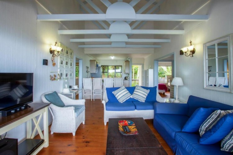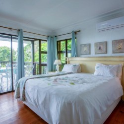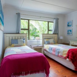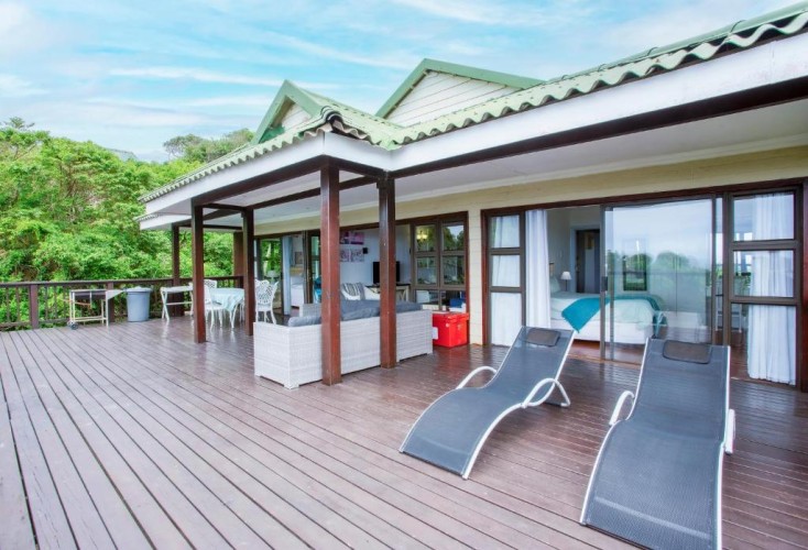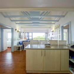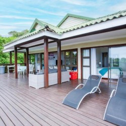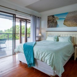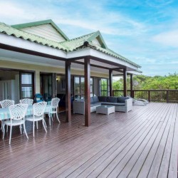 The house is fully air-conditioned, beautifully furnished, fully equipped for self-catering, and serviced daily. There is a microwave, fridge, freezer, and all the crockery and cutlery required in the self-contained kitchen. The living area and 2 of the bedrooms open up onto a very spacious wooden deck overlooking the sea – with a built-in Megamaster Gas and Charcoal braai. There is a private wooden walkway that leads onto the beach.