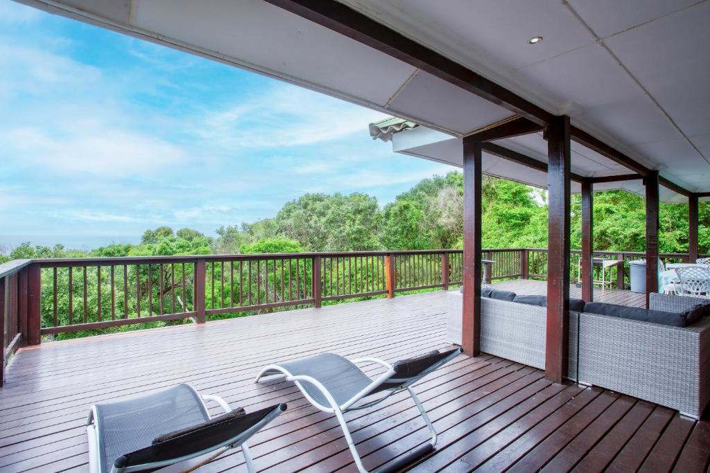 The house is fully air-conditioned, beautifully furnished, fully equipped for self-catering, and serviced daily. There is a microwave, fridge, freezer, and all the crockery and cutlery required in the self-contained kitchen. The living area and 2 of the bedrooms open up onto a very spacious wooden deck overlooking the sea – with a built-in Megamaster Gas and Charcoal braai. There is a private wooden walkway that leads onto the beach.