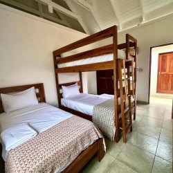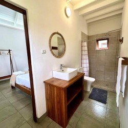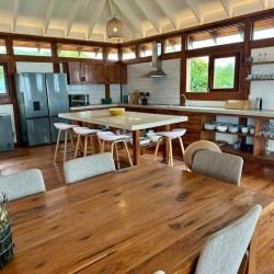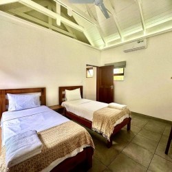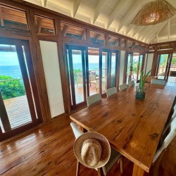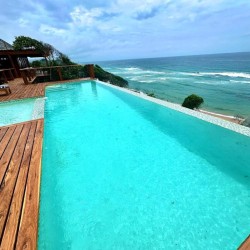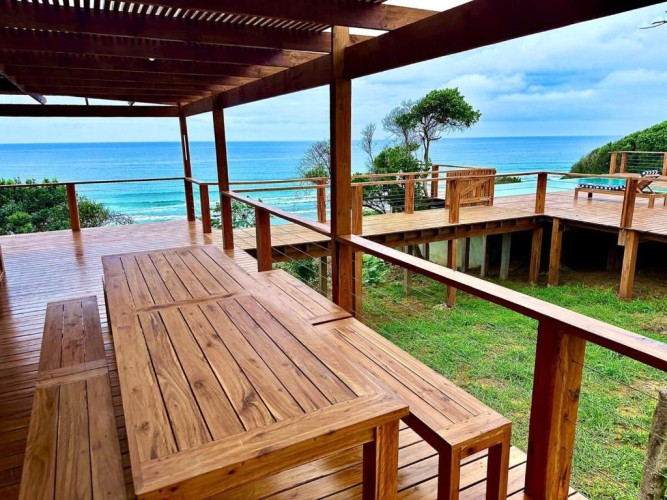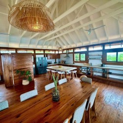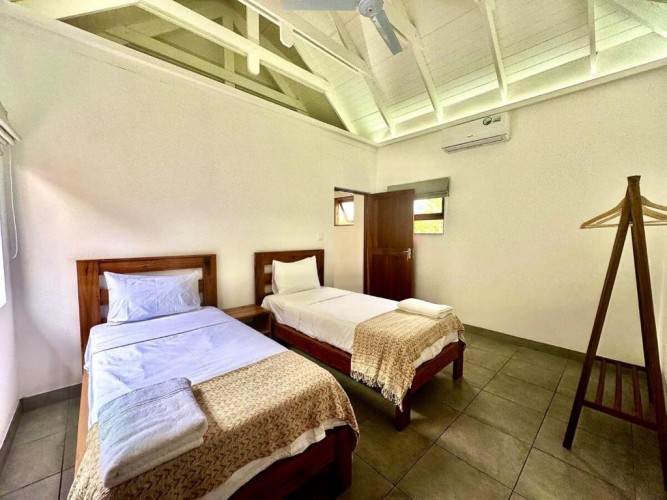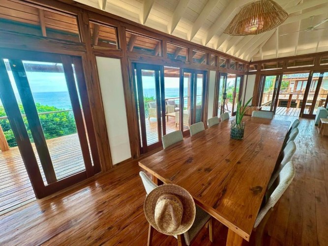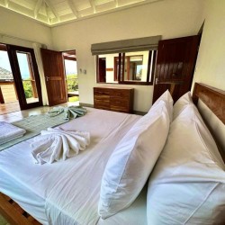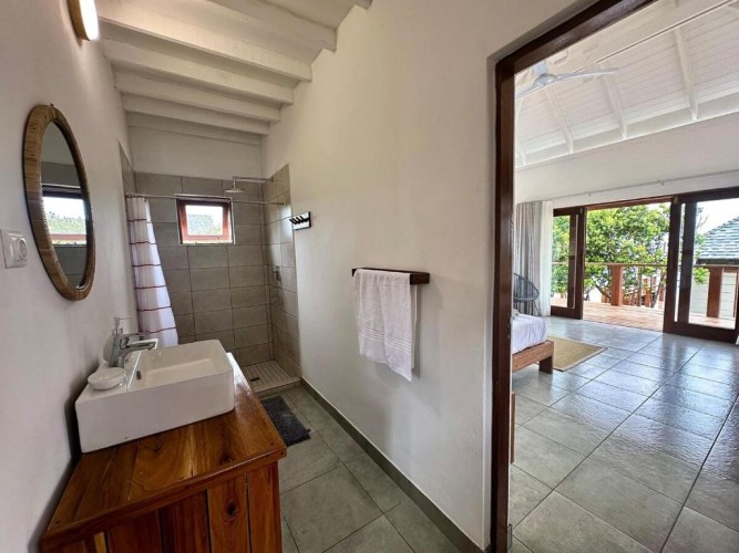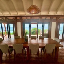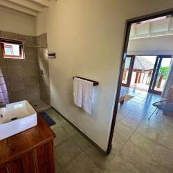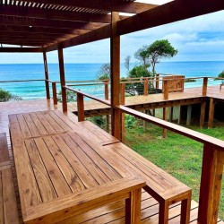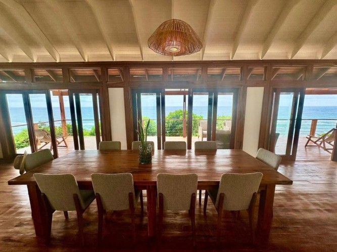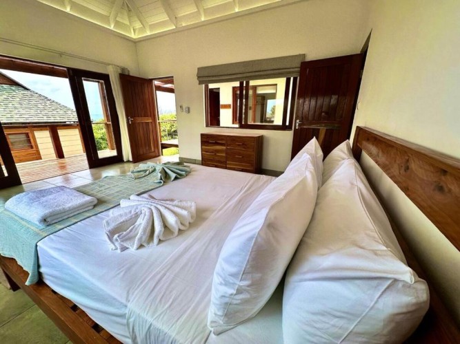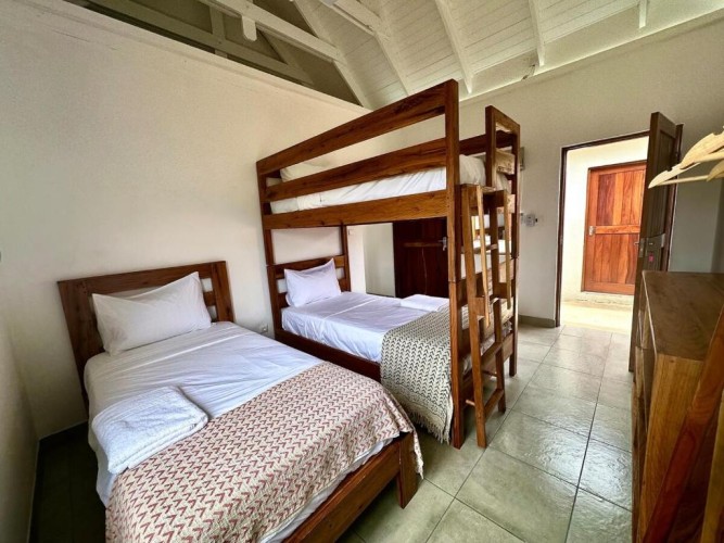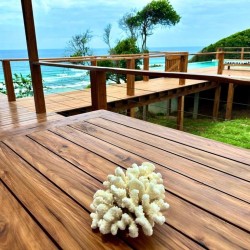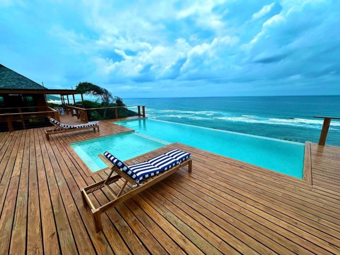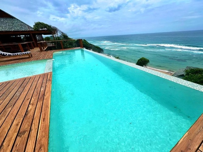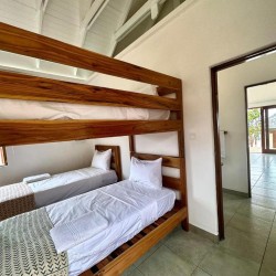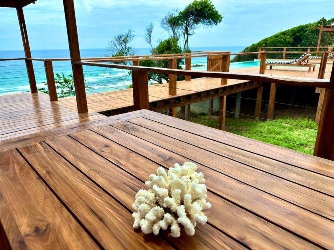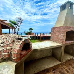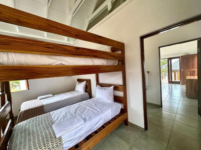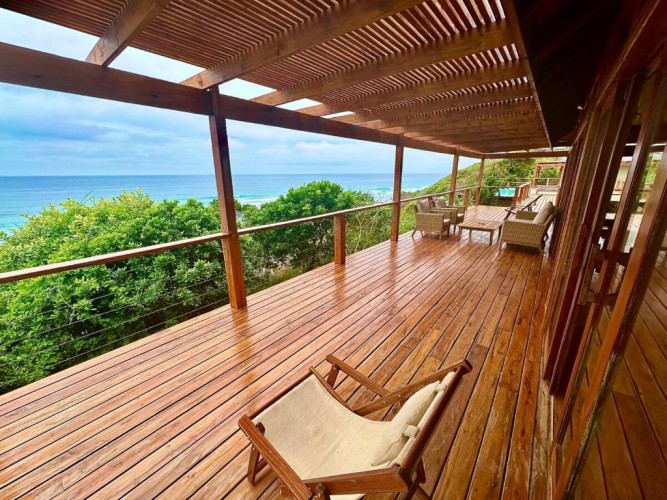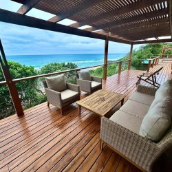Escape to the serene shores of Ponta Mamoli, Mozambique, where this stunning beach holiday home offers the perfect blend of luxury, tranquility, and natural beauty. Located just a 45-minute drive from the Kosi Bay border in southern Mozambique, this property is set within an exclusive housing estate right in front of Frederico’s Bay, a renowned snorkeling destination. With its crystal-clear waters and vibrant marine life, it’s the ideal spot for ocean enthusiasts to explore. Bird lovers will also find the area a haven, so don’t forget to bring your bird books and binoculars. The warm ocean waters and pristine, remote beaches create an idyllic setting for a relaxing getaway. The house accommodates up to 13 guests in five well-appointed bedrooms, including a detached en-suite bedroom for added privacy. The main bedroom features a king-size bed, an en-suite bathroom with a shower, basin, and toilet, and breathtaking panoramic sea views. Two additional bedrooms share a bathroom: one with a queen-size bed and sea views, and the other with two single beds. Another two bedrooms share a separate bathroom: one with a queen-size bed and sea views, and the other furnished with a bunk bed and a single bed. A detached building behind the house includes an en-suite bedroom with two single beds. All bedrooms are equipped with air conditioning, ceiling fans, and fresh linen to ensure a comfortable stay. At the heart of the home is a spacious open-plan living area, comprising a lounge, dining area, and a fully equipped kitchen perfect for self-catering. This space offers 180-degree sea views and seamlessly opens onto a verandah with comfortable seating, making it the perfect spot to relax and soak in the natural beauty of Frederico’s Bay Complimentary WIFI at the house, please ask the staff for the password.. Outdoor amenities are designed to enhance your stay. A private rim flow swimming pool features both a kiddies’ section and a larger adult section, with sun loungers perfectly positioned to enjoy the panoramic views. Behind the house, a built-in braai (barbecue) area and a pizza oven offer wonderful options for outdoor dining, complemented by a large private garden ideal for relaxing or entertaining. A sand walkway leads directly from the house to the pristine beach, making it effortless to enjoy the sun and surf. There is a washing machine (which only the staff operate). Supply your laundry detergent and ask the staff to assist with your laundry needs. For dining out, the local restaurant Cutta Corner is just a five-minute drive away, while the charming village of Ponta Malongane, with its array of restaurants and market options, is only 20 minutes away. Whether you’re looking for adventure, relaxation, or quality time with loved ones, this beach house offers the ultimate Mozambique escape. Book your stay now and create unforgettable memories at this exceptional holiday home in Ponta Mamoli!