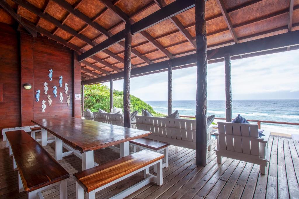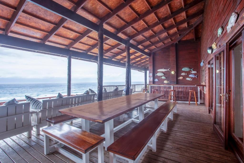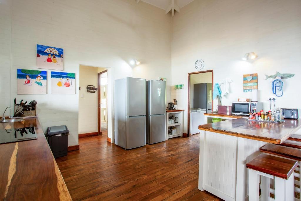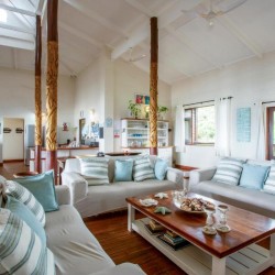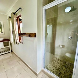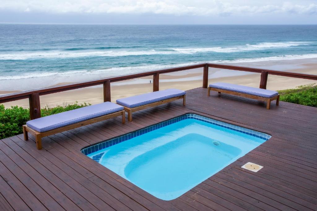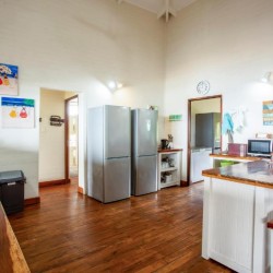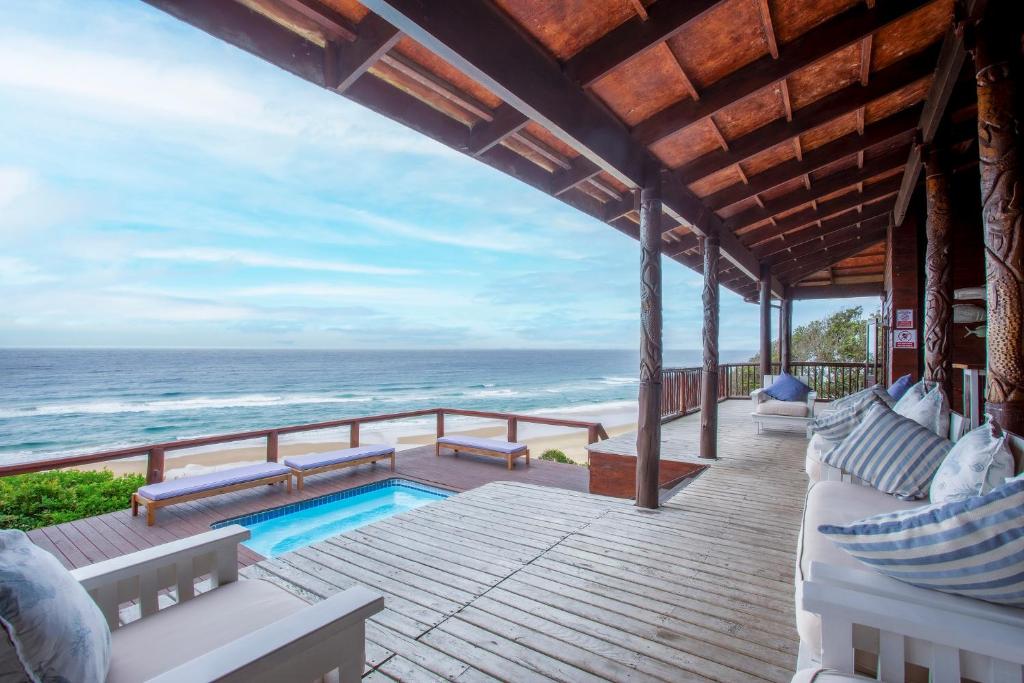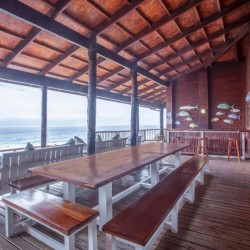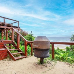 This house is situated on Mar Azul beach housing estate in Ponta Malongane. Mar Azul is a private beach housing estate. The house is situated on the beachfront row of houses. There are 7 bedrooms. The 2 upstairs bedrooms have sea views. 5 bedrooms have a kingsize bed in each room and the remainder 2 bedrooms have 2 x bunk beds in each room, a double bed at the bottom and a single bed on top, each room sleeps 6 people. Sleeping 18 people comfortably. Upstairs – 4 bedrooms & 4 bathrooms ( 1 bathroom has bath & shower & the rest showers) Downstairs – 3 bedrooms & 3 bathrooms ( all showers) All 7 bedrooms are en-suite. The house has ceiling fans, no air conditioning. There are 2 full-time staff, Mito and Rosa. They do the cleaning of the house. The open plan kitchen and living area open up onto a large outside wooden deck area with outside furniture and a swimming pool overlooking the ocean. This house has 180-degree sea views. There is a coal braai. Wood can be bought in the local village or bring your own charcoal with. The kitchen is fully equipped for self-catering and includes 4 hob electric stove and oven, washing machine, 3 fridge/freezers, 2 chest deep freezers, microwave, kettle, toaster, washing machine. There is no TV. All cleaning materials and toilet paper is provided. Bath towels are provided, you must bring beach towels with. The house also has a generator for if there is a power outage. Charcoal Built-in Braai, Pool, Outdoor furniture. Please take note that if you are booked in on Mar Azul Estate and have a boat, jet ski, or quad bike, you can park 1 of 2 places, see below: Park at the security gate (bottom of the hill) R300 a day Park at the top of the hill (communal parking) – free If you decide to park at the security gate then ensure that you have enough cash to pay for the parking on your departure date. House Rules To try and keep everyone safe and happy, please take note of some of our important house rules: The speed limit in the resort is 10km/hr. Please respect the 10:30 pm noise restriction – Loud music is not much fun when you are not at the party. No fireworks are allowed.. Nearly all of our houses are made of wood and this could go horribly wrong. No children under the age of 18 are allowed to ride a quad bike. (Please note that this is Mozambiquean law, not our rules). No littering. We know this sounds really obvious, but you would be amazed. And, we would really appreciate it if you removed two pieces of rubbish from the beach each time you go. No unattended open fires. Yip, we already said it, the houses are made of wood and we don’t want to light up the sky. There is a fish cleaning/gutting station near security. Please use this area so we can contain the smell and keep it clean so you don’t get a fly in your drink. For security reasons, all casual labour must be sourced via the Mar Azul Manager. No access card, no entry. Guests must advise Security in advance of any visitors. If their name is not at Security, they will not be allowed access. Abuse of the Security staff will absolutely not be tolerated. They are here to look after us, so please treat them with respect. Thank you – we hope you have a wonderful holiday with us.